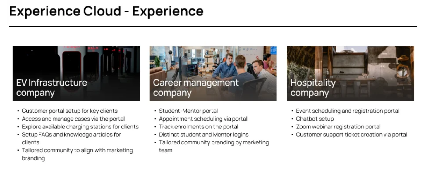 technology with this latest innovation, crafted to elevate every business journey. Our experiences within the Salesforce ecosystem are detailed below.